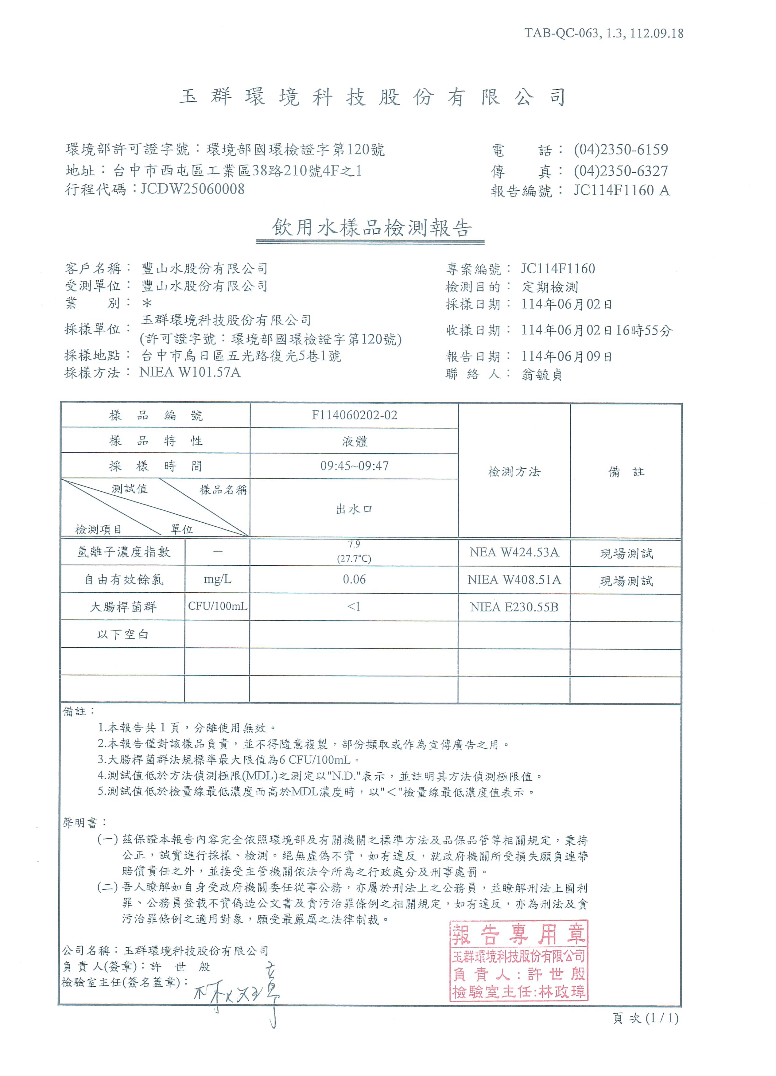 『六月份水質檢驗報告』
